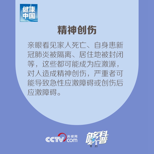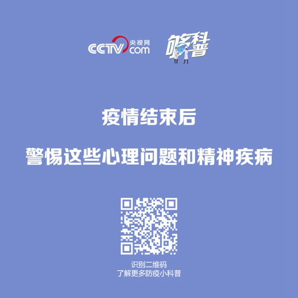 新冠肺炎疫情影響范圍之廣、持續(xù)時(shí)間之長、程度之重,身處其中的每個(gè)人都有切身感受。通過積極的應(yīng)對(duì)和干預(yù)措施,大家能夠逐漸恢復(fù)正常生活、學(xué)習(xí)和工作。但在疫情結(jié)束后,可能會(huì)有一部分人出現(xiàn)各種各樣的心理問題或精神疾病。疫情結(jié)束后最需要警惕的心理問題和精神疾病有哪些?該如何應(yīng)對(duì)?(資料來源:《新型冠狀病毒肺炎心理健康指導(dǎo)手冊》)