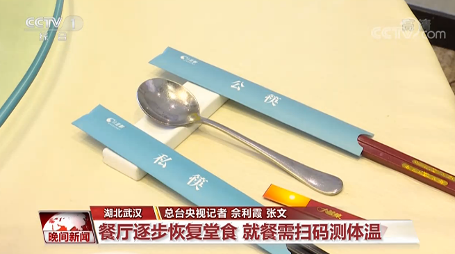 4月26日起,湖北武漢的餐飲業(yè)逐步恢復堂食,這個假期,各家餐廳的生意好了起來。在一家老字號餐廳,顧客須進行酒精消毒、測體溫、驗證健康碼等環(huán)節(jié)無誤后,方可進入堂食區(qū)域就餐。就餐時,顧客之間不但要保持距離,還需要使用公筷。