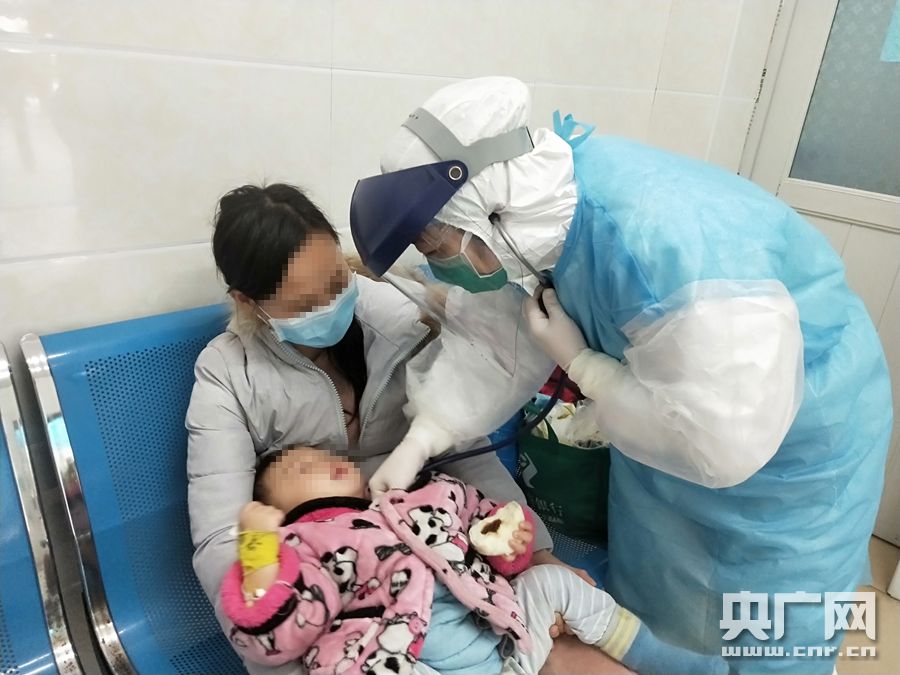 吳婷為發(fā)熱的兒童診治(央廣網(wǎng)發(fā) 通訊員供圖)