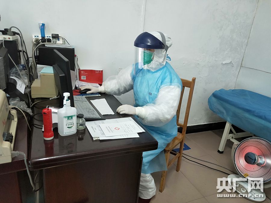 吳婷穿著防護服檢查病歷資料(央廣網(wǎng)發(fā) 通訊員供圖)