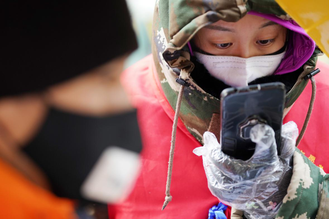 1993年出生的李文琦,是在深圳工作的哈爾濱人,春節(jié)返鄉(xiāng)回哈后成為社區(qū)志愿者。她說:“國家有難,我們‘90后’正值青年,身強力壯,應(yīng)該往前沖。”圖為李文琦(右)在檢查往來車輛人員的手續(xù)證明。新華社記者 王建威/攝