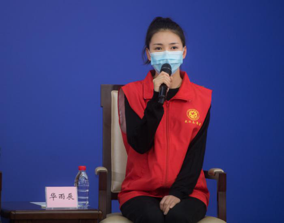 2020年2月23日,國務(wù)院新聞辦公室在湖北武漢舉行國務(wù)院新聞辦記者見面會,邀請在武漢疫情防控一線的普通工作者講述他們團結(jié)奮戰(zhàn)的故事,并回答記者提問。圖為武漢市青山區(qū)鋼花小學(xué)音樂教師華雨辰在記者會上。新華社記者 肖藝九/攝