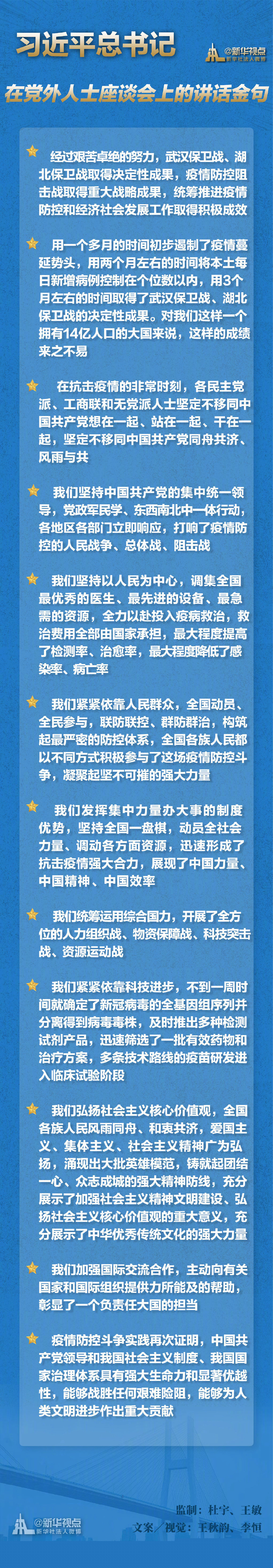 5月8日,中共中央在中南海召開(kāi)黨外人士座談會(huì),就新冠肺炎疫情防控工作聽(tīng)取各民主黨派中央、全國(guó)工商聯(lián)和無(wú)黨派人士代表的意見(jiàn)和建議。在會(huì)上,習(xí)近平總書記的重要講話鼓舞人心! ?????