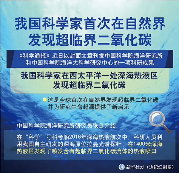 新華社青島5月11日電(記者張旭東)《科學通報》近日以封面文章刊發(fā)中國科學院海洋研究所和中國科學院海洋大科學研究中心的一項科研成果:我國科學家在西太平洋一處深海熱液區(qū)發(fā)現(xiàn)超臨界二氧化碳,這是全球首次在自然界發(fā)現(xiàn)超臨界二氧化碳,并為研究生命起源提供了新啟示。