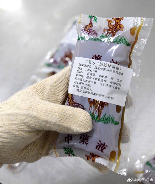 說(shuō)明還對(duì)“清肺排毒湯”的煎煮方法、程序和使用方法等進(jìn)行了規(guī)范。例如,“清肺排毒湯”應(yīng)使用傳統(tǒng)中藥飲片調(diào)配,水煎煮使用,共煎共煮程序必不可少;為確保藥力精純,不建議與其他方劑、藥物(包括中成藥)同時(shí)使用。