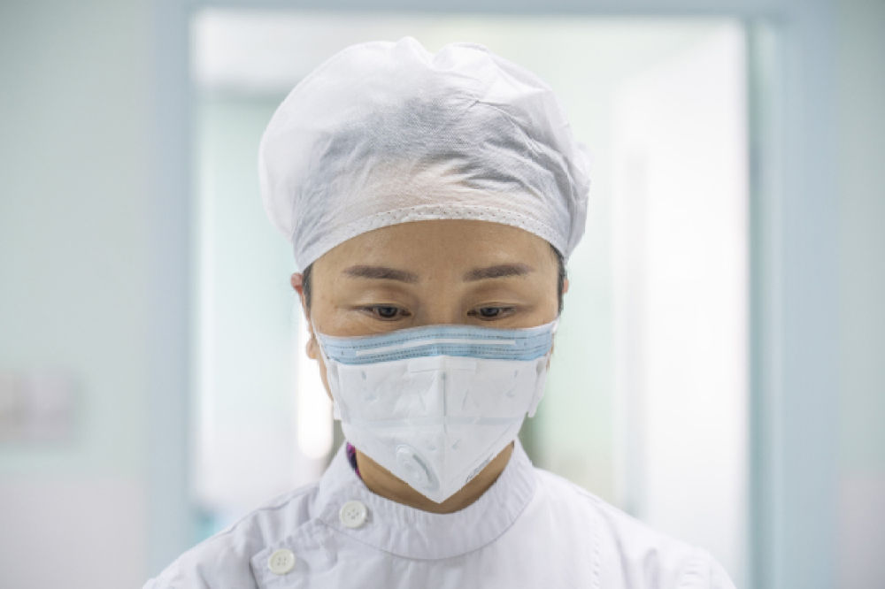 4月4日,在武漢大學中南醫(yī)院住院部,醫(yī)護人員在默哀 才楊/攝