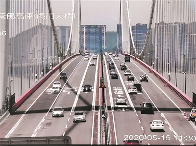 虎門大橋昨日通車后橋面交通監(jiān)控截圖。