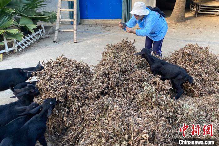 海南文昌龍樓紅海山羊養(yǎng)殖農(nóng)民專業(yè)合作社內(nèi),社長符歡正悉心照料合作社養(yǎng)殖的130多只黑山羊。喂羊、清理羊舍、售賣農(nóng)產(chǎn)品,是他每天的工作。