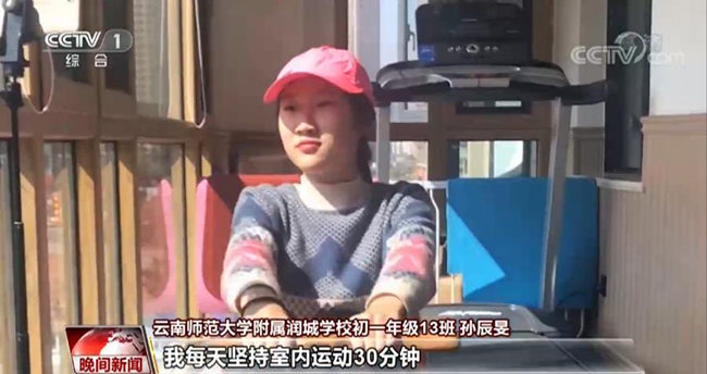 云南師范大學附屬潤城學校初一年級13班 孫辰旻:在爸爸的陪伴下,我每天堅持室內(nèi)運動30分鐘,室外運動1小時。體育運動不僅能提升我的身體素質(zhì),還能不斷磨練我的意志,增強我的自信。