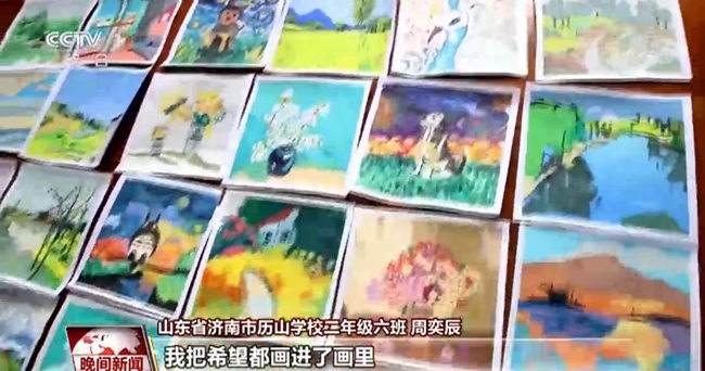 山東省濟南市歷山學校二年級六班 周奕辰:這是疫情好轉(zhuǎn)后我第一次走進田野里寫生的時候畫的,我的畫里有春天的小草、田野,我把希望都畫進了畫里。