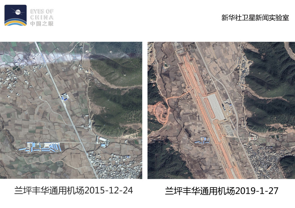 ↑衛(wèi)星記錄了蘭坪豐華通用機場從無到有的建設(shè)過程。