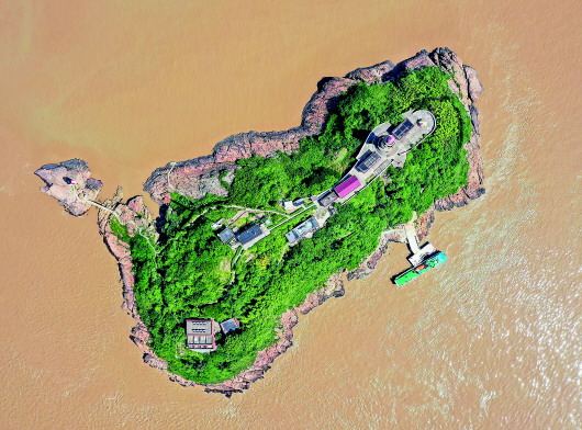 登上七里嶼島山頂,一根十余米高的國旗桿遙遙在目,一抹鮮艷的紅色在海天交接的碧藍(lán)晴空下分外耀眼。