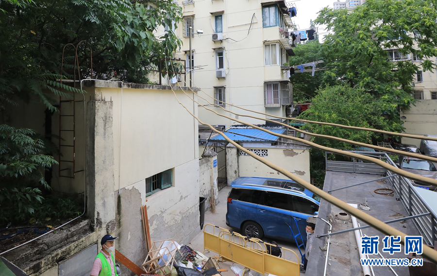 這是上海江蘇路街道武定西路一處居民區(qū)內(nèi)的建筑垃圾堆放點,畫面右側(cè)電線遠端可見安裝有人工智能攝像頭,當建筑垃圾堆積高度到達設定值時,攝像頭會向上海江蘇路街道城運中心發(fā)出報警信息(6月8日攝)。 新華社記者 方喆攝