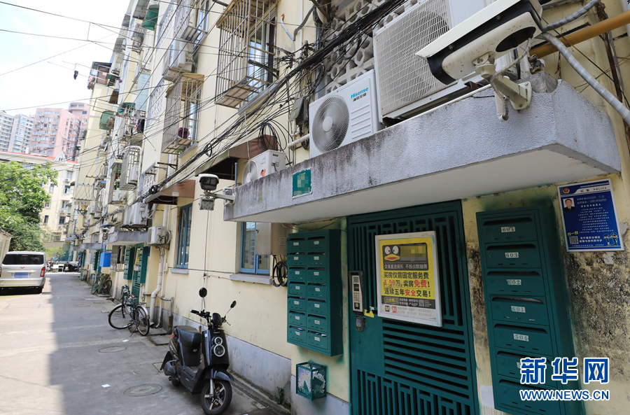 這是上海江蘇路街道一居民樓單元門上安裝的與上海江蘇路街道城運中心聯(lián)網(wǎng)的攝像設備(6月8日攝)。新華社記者 方喆攝