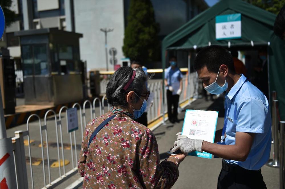 5月11日,在北京市海淀區(qū)的北京市十一學(xué)校龍樾實驗中學(xué),初三年級學(xué)生進(jìn)入學(xué)校前掃描“健康碼”。新華社記者?任超?攝
