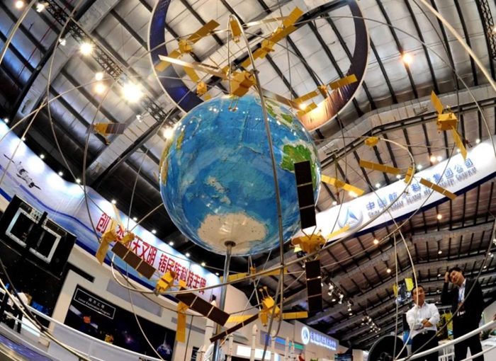 圖為珠海航展上展出的北斗全球衛(wèi)星導(dǎo)航系統(tǒng)規(guī)劃模型(2012年11月14日攝)新華社記者 梁旭 攝