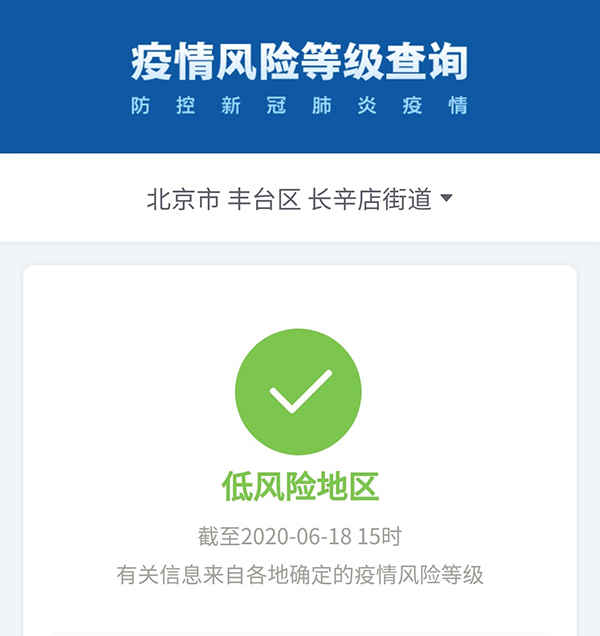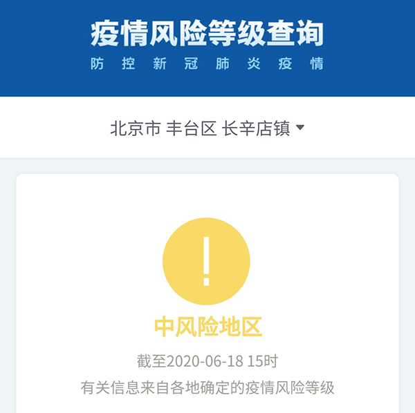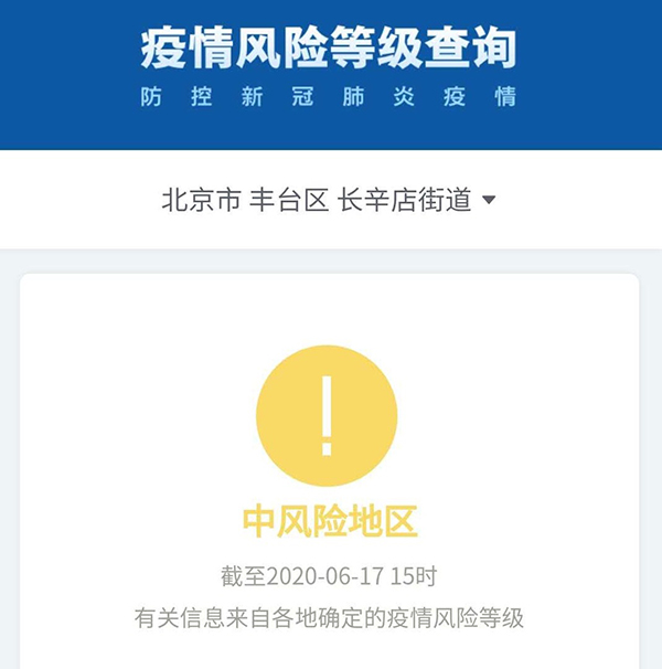 而昨天豐臺(tái)長(zhǎng)辛店街道顯示為中風(fēng)險(xiǎn)地區(qū):