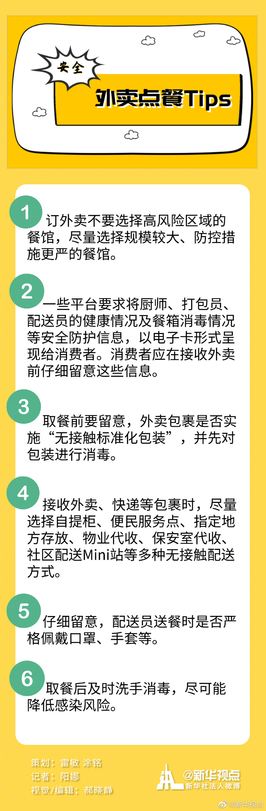6月23日下午,北京市通報(bào)了一例外賣平臺(tái)送餐人員感染新冠肺炎的病例。該病例6月1日至17日每日通過(guò)“餓了么”平臺(tái)接單送餐,平均每天接50單左右。外賣員接觸人員多、暴露風(fēng)險(xiǎn)高,大家開(kāi)始擔(dān)憂,病毒傳播途徑又多了一條。外賣還能點(diǎn)嗎?怎么點(diǎn)外賣、怎么收快遞才能降低被傳染風(fēng)險(xiǎn)?小編為你準(zhǔn)備了這份“外賣點(diǎn)餐Tips”,收好!