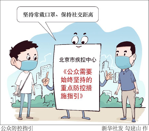 新華社北京6月27日電(記者俠克)北京市疾控中心日前發(fā)布《公眾需要始終堅(jiān)持的重點(diǎn)防控措施指引》,提示應(yīng)堅(jiān)持常戴口罩,保持社交距離,保持手衛(wèi)生,配合做好健康監(jiān)測,做好飲食衛(wèi)生,做好日常清潔和消毒。