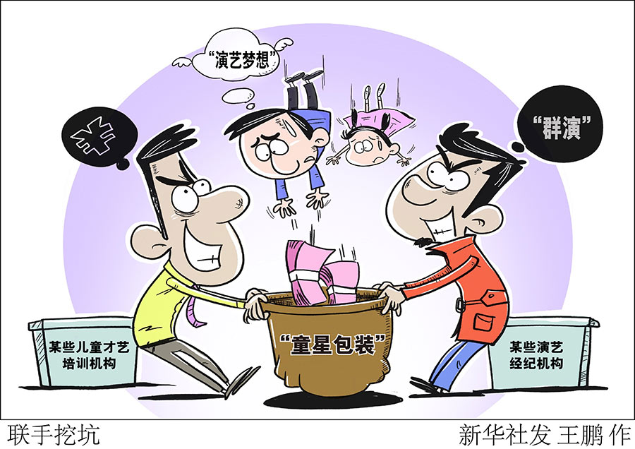在兒童才藝培訓(xùn)市場(chǎng)缺乏有效監(jiān)管的現(xiàn)狀下,一些培訓(xùn)機(jī)構(gòu)、演藝經(jīng)紀(jì)公司以才藝培訓(xùn)作幌子,動(dòng)輒向家長(zhǎng)收取上萬(wàn)元培訓(xùn)費(fèi)用,其實(shí)是兜售表演機(jī)會(huì);而演藝經(jīng)紀(jì)機(jī)構(gòu)一旦高價(jià)“招募”到一名兒童演員,就會(huì)給培訓(xùn)機(jī)構(gòu)分成,培訓(xùn)機(jī)構(gòu)借此也能顯示與電視臺(tái)、節(jié)目制作方有合作,對(duì)招生構(gòu)成“金字招牌”,容易吸引家長(zhǎng)報(bào)班,二者合作心照不宣。