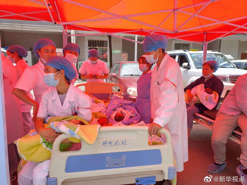 7月2日,貴州省畢節(jié)市赫章縣發(fā)生4.5級(jí)地震,震源深度13千米。地震襲來,當(dāng)不少人都往外疏散時(shí),正在開展業(yè)務(wù)學(xué)習(xí)的赫章縣人民醫(yī)院新生兒科醫(yī)生們第一時(shí)間“逆行”病房,緊隨而來的還有實(shí)習(xí)生、急診科護(hù)士等。他們每人負(fù)責(zé)一個(gè)寶寶,抱著往外疏散,確保當(dāng)時(shí)在病房的26個(gè)新生寶寶平安撤離到安全地帶。致敬白衣天使?。ㄓ浾咄跣旅?、駱飛 圖片來源赫章縣人民醫(yī)院)
