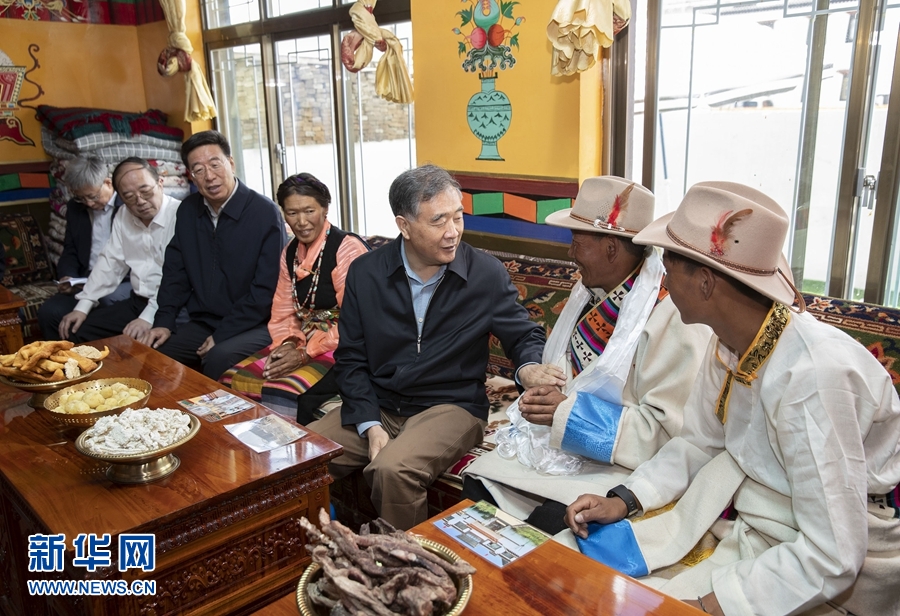 7月6日至8日,中共中央政治局常委、全國政協(xié)主席汪洋在西藏調(diào)研。這是7月6日,汪洋在日喀則桑珠孜區(qū)江當(dāng)鄉(xiāng)郭加新村易地扶貧搬遷集中安置點(diǎn)藏族搬遷群眾家中看望。 新華社記者 黃敬文 攝