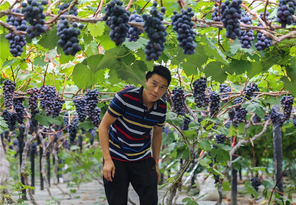 在四川省眉山市彭山區(qū)果園村,張雄在查看葡萄長勢(6月16日攝)。新華社記者 王曦 攝