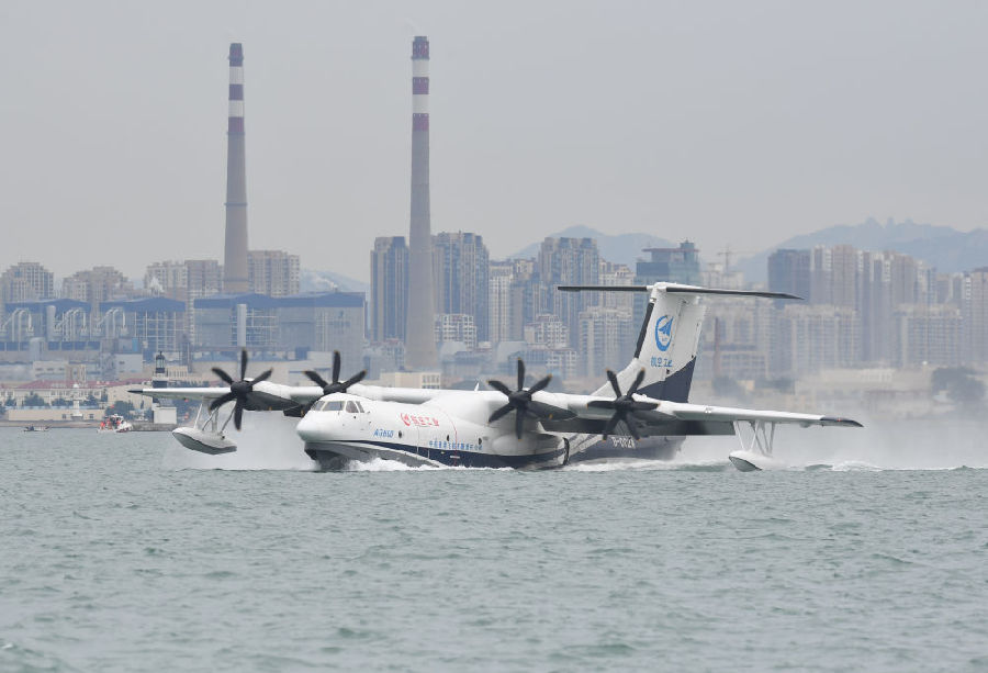 國(guó)產(chǎn)大型水陸兩棲飛機(jī)“鯤龍”AG600成功實(shí)現(xiàn)海上首飛