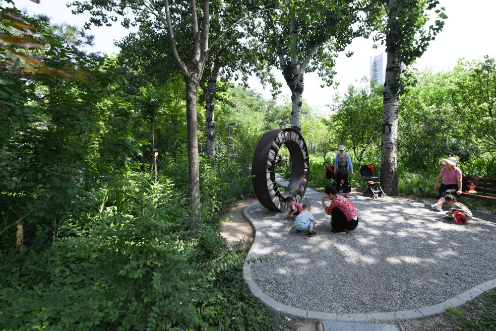 市民在北京市西城區(qū)“廣陽(yáng)谷”城市森林內(nèi)游玩(6月10日攝)。新華社記者 鞠煥宗 攝