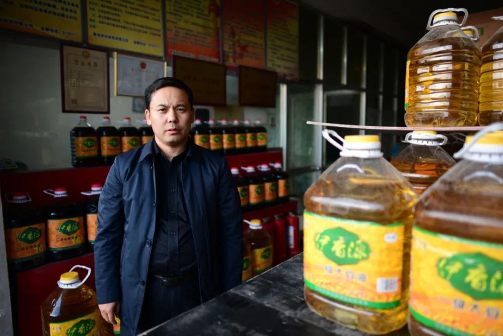 韓光遠(yuǎn)在自家的食用油配送點查看配送狀況 張宏祥 攝