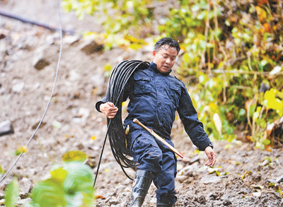 阿旺背著光纜在查找線路斷點(diǎn)。本報記者 徐馭堯攝
