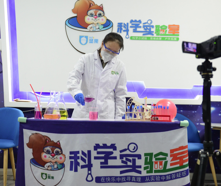 2月16日,呼和浩特市玉泉區(qū)青少年宮的老師通過線上課堂做測試酸堿度小實驗