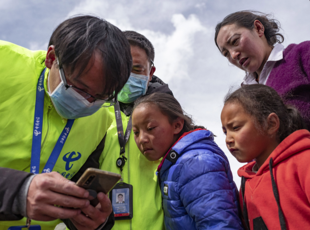 3月6日,中國電信集團拉薩分公司當雄電信局的技術人員在烏瑪塘鄉(xiāng)巴嘎村幫助村民調試無線網(wǎng)絡,方便偏遠牧區(qū)學生上好網(wǎng)課(晉美多吉/攝)