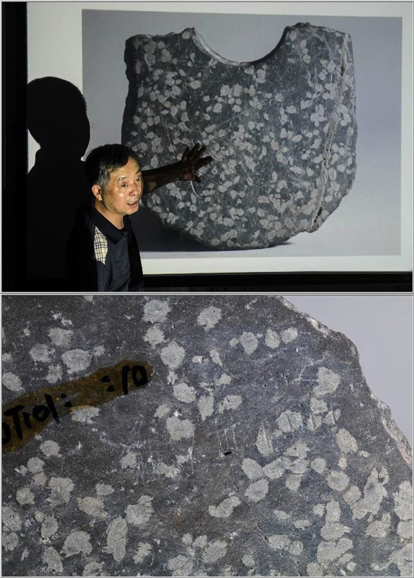 浙江平湖莊橋墳遺址,兩件殘石鉞上發(fā)現(xiàn)的刻畫符號經(jīng)考證確認是良渚時期原始文字,距今約5000年 韓傳號 攝