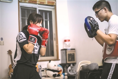 妻子劉詩敏在他的鼓勵下,宅家期間也有了新愛好——拳擊,運動量大,而且有助于發(fā)泄情緒。拳擊手套、腰靶、手靶,袁震花200多元網購了一套拳擊設備,然后配合妻子在家開練,一些基本的動作則通過短視頻教學平臺學習。復工復產后,袁震回到健身房,詩敏卻愛上了在家打拳擊,因為可以隨時隨地酣暢淋漓地打上幾拳。