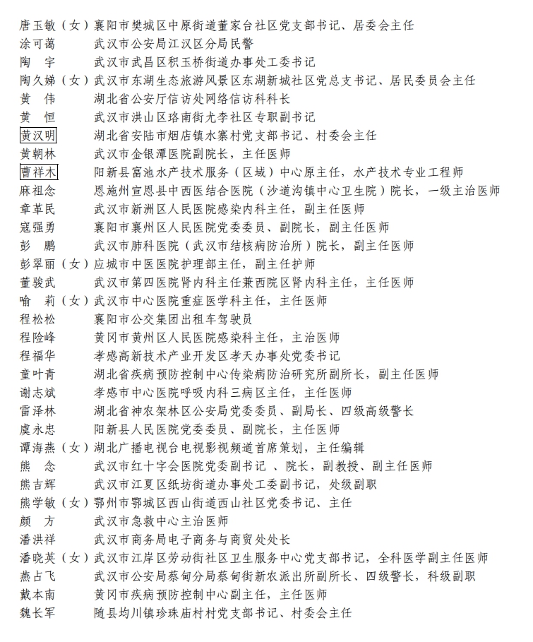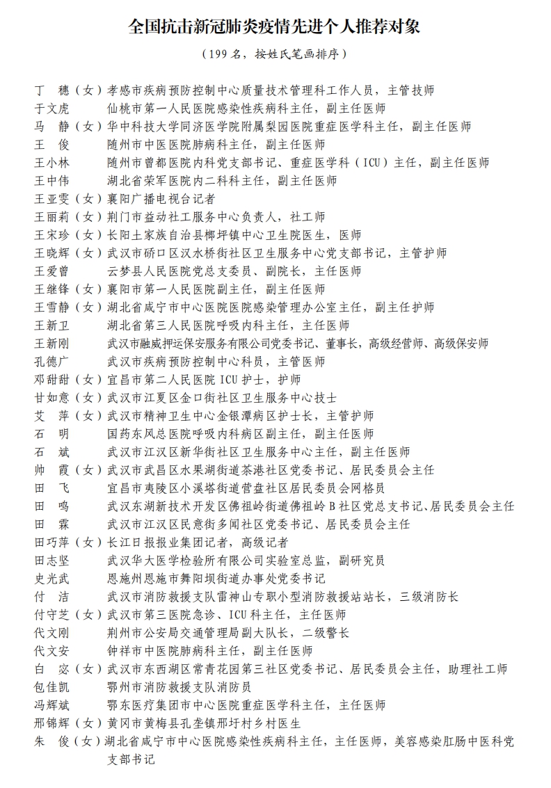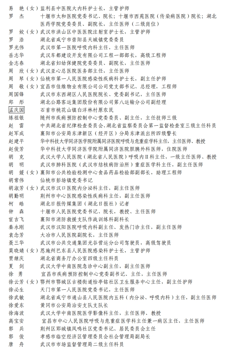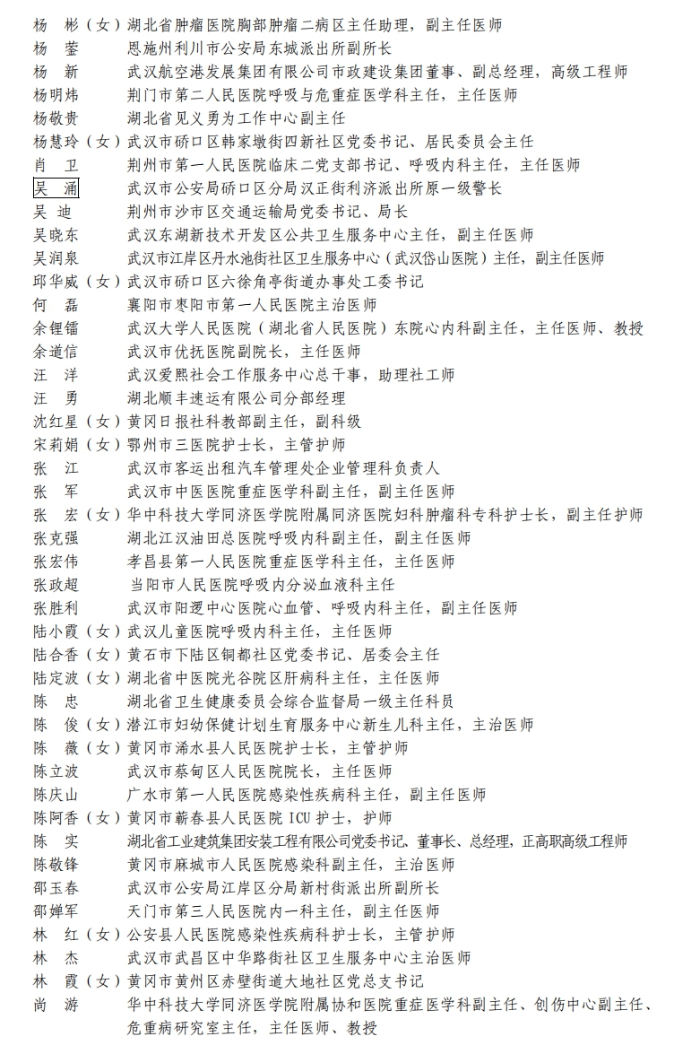 據(jù)湖北省人民政府網(wǎng)站消息,5日,湖北省人民政府發(fā)布關(guān)于全國抗擊新冠肺炎疫情先進(jìn)個(gè)人、先進(jìn)集體和全國優(yōu)秀共產(chǎn)黨員、全國先進(jìn)基層黨組織推薦對象的公示。武漢市武昌醫(yī)院原黨委副書記、院長,主任醫(yī)師劉智明等入選。