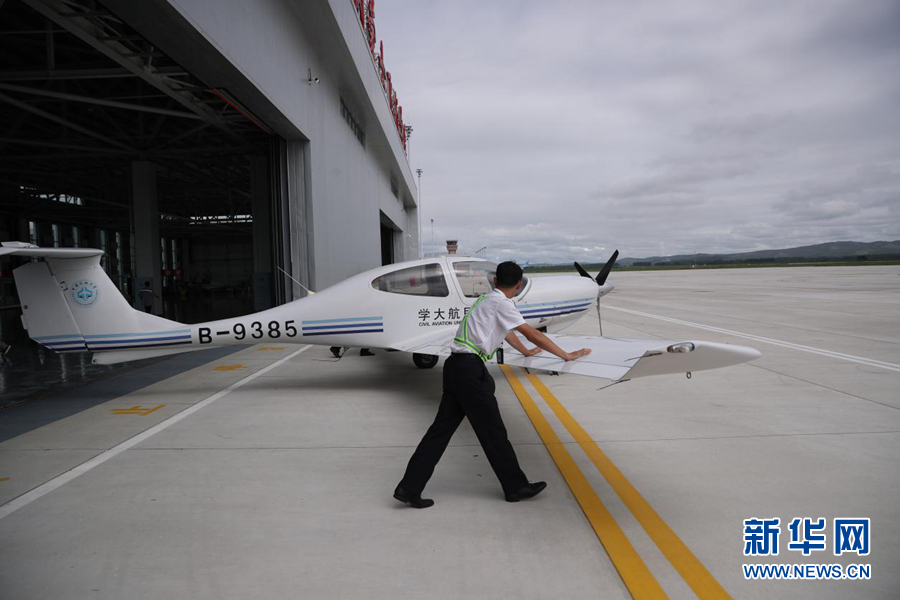 圖為訓(xùn)練飛行前飛行學(xué)員將訓(xùn)練機(jī)推出機(jī)庫。新華網(wǎng)記者焦鵬 攝