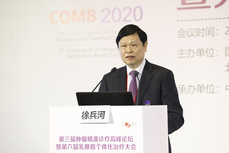 國(guó)家腫瘤質(zhì)控中心乳腺癌專家委員會(huì)主任委員、中國(guó)醫(yī)學(xué)科學(xué)院腫瘤醫(yī)院徐兵河教授在第六屆乳腺癌個(gè)體化治療大會(huì)上發(fā)言。圖片由受訪者提供
