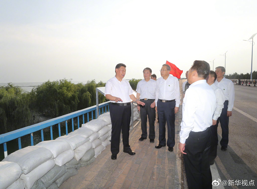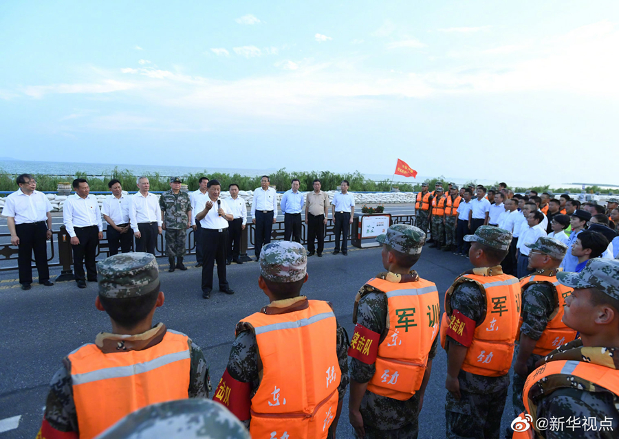 19日下午,正在安徽考察調研的習近平總書記來到合肥市肥東縣十八聯(lián)圩生態(tài)濕地蓄洪區(qū)巢湖大堤羅家疃段,察看巢湖水勢水情。他強調,洪水退后,要防止蓄洪區(qū)內(nèi)出現(xiàn)水退人進的現(xiàn)象。我們要實現(xiàn)人與自然和諧相處,就不能同自然爭奪發(fā)展空間。八百里巢湖要用好,更要保護好、治理好,使之成為合肥這個城市最好的名片。(文字記者:張曉松 攝影記者:鞠鵬 王曄 燕雁)
