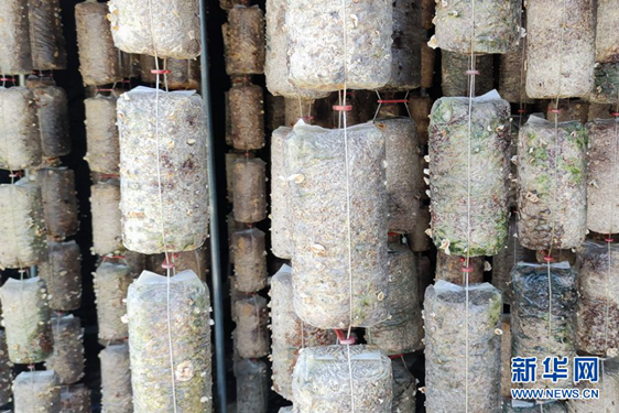 圖為楊莊村食用菌產(chǎn)業(yè)扶貧車間內(nèi)的玉木耳菌袋。新華網(wǎng)記者李志強(qiáng) 攝