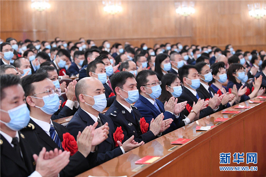 隨后,大會對全國抗擊新冠肺炎疫情先進個人和先進集體、全國優(yōu)秀共產(chǎn)黨員和全國先進基層黨組織進行了表彰。受表彰的個人和集體代表胸戴大紅花,走上主席臺,從習近平等黨和國家領導人手中接過獎章、證書、獎牌。