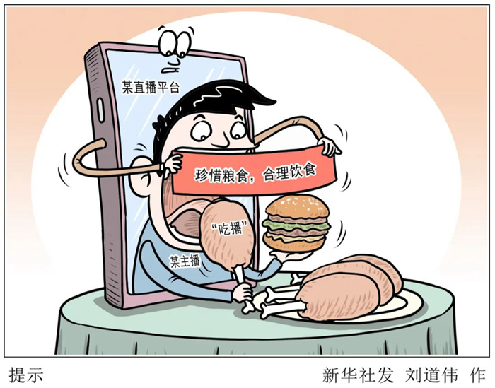 近日,中國演出行業(yè)協(xié)會網(wǎng)絡(luò)表演(直播)分會發(fā)出通知提示企業(yè),加強(qiáng)引導(dǎo)樹立正確的飲食消費(fèi)觀,堅決禁止在直播中出現(xiàn)假吃、催吐、獵奇、宣揚(yáng)量大多吃,暴飲暴食,以及其他鋪張浪費(fèi)的直播行為。