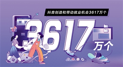 像張俊杰、潘仕學(xué)一樣在抖音上實現(xiàn)“靈活”就業(yè)的人還有很多。隨著越來越多的人全職或兼職以拍視頻為職業(yè),抖音目前已形成連接億萬用戶和創(chuàng)作者、商家的互利共生就業(yè)生態(tài)。據(jù)《報告》測算,過去一年,抖音整體帶動的直接和間接就業(yè)機會達(dá)3617萬個。