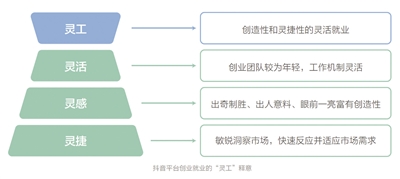 在業(yè)內(nèi)看來,抖音平臺創(chuàng)造的就業(yè)機會是典型的“靈工”,即強調(diào)即興發(fā)揮、創(chuàng)造力和靈捷響應(yīng)的靈活就業(yè)。這使抖音平臺就業(yè)體系有著強大的生命力和吸引力,吸引大量人才入駐,并有力帶動科技創(chuàng)新、產(chǎn)業(yè)發(fā)展和經(jīng)濟(jì)增長。