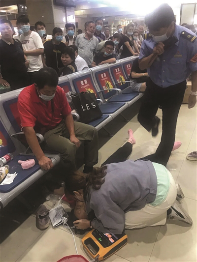 今年4月30日南京苜蓿園地鐵站附近一家健身館內(nèi)一名女子出現(xiàn)心臟驟停,健身館教練、地鐵站值班站長、值班警員等接連對(duì)女子進(jìn)行心肺復(fù)蘇,并使用苜蓿園地鐵站設(shè)置的AED對(duì)女子進(jìn)行電除顫實(shí)現(xiàn)成功救人。地鐵工作人員告訴記者,公司組織過相應(yīng)的AED操作,當(dāng)時(shí)他通過監(jiān)控看到有人拿AED,就跟了過去,發(fā)現(xiàn)有人疑似心臟驟停,就迅速參與了急救的過程。