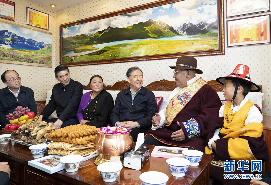 中共中央政治局常委、全國政協(xié)主席汪洋近日在青海調(diào)研。這是9月14日,汪洋在果洛藏族自治州瑪沁縣大武鎮(zhèn)久美家園易地扶貧搬遷安置點(diǎn)牧民家中看望。 新華社記者 黃敬文 攝