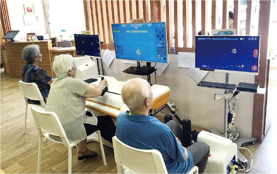 “在它們的陪伴下,康復(fù)就像做游戲,老人們都很喜歡玩?!睋?jù)照護(hù)家園負(fù)責(zé)人施君潔介紹,當(dāng)康復(fù)師設(shè)定好康復(fù)方案后,老人坐在電腦前,手肘放在肘托中,手指抓住操縱桿,屏幕上就會(huì)出現(xiàn)各種水果。老人可通過操縱桿上下左右移動(dòng)抓水果,來達(dá)到康復(fù)訓(xùn)練的目的。
