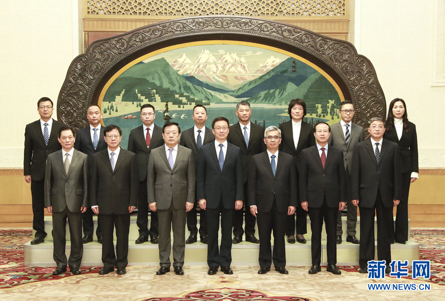 9月16日,中共中央政治局常委、國務院副總理、中央港澳工作領(lǐng)導小組組長韓正在北京人民大會堂會見澳門特別行政區(qū)保安司司長黃少澤率領(lǐng)的澳門紀律部隊高層代表團,與他們交流并合影留念。 新華社記者 龐興雷 攝