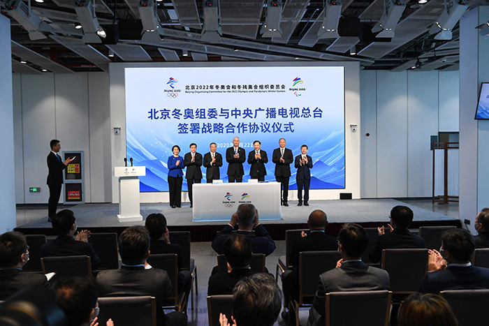 在北京冬奧會倒計時500天之際,2020年9月22日上午,中央廣播電視總臺與北京冬奧組委簽署《相約北京系列冬季體育賽事轉播工作框架合同》和《北京冬奧會電視轉播科技創(chuàng)新應用及科技冬奧重點專項技術協(xié)同戰(zhàn)略合作框架協(xié)議》,標志著雙方冬奧宣傳轉播報道、科技創(chuàng)新引領合作進入新階段。