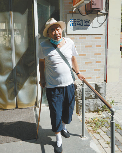 北京市海淀區(qū)北下關街道南里二社區(qū)經(jīng)過適老化改造后,老人生活更加方便。圖為社區(qū)養(yǎng)老服務中心門口,腿腳不便的老人依靠扶手出門。記者 申少鐵攝